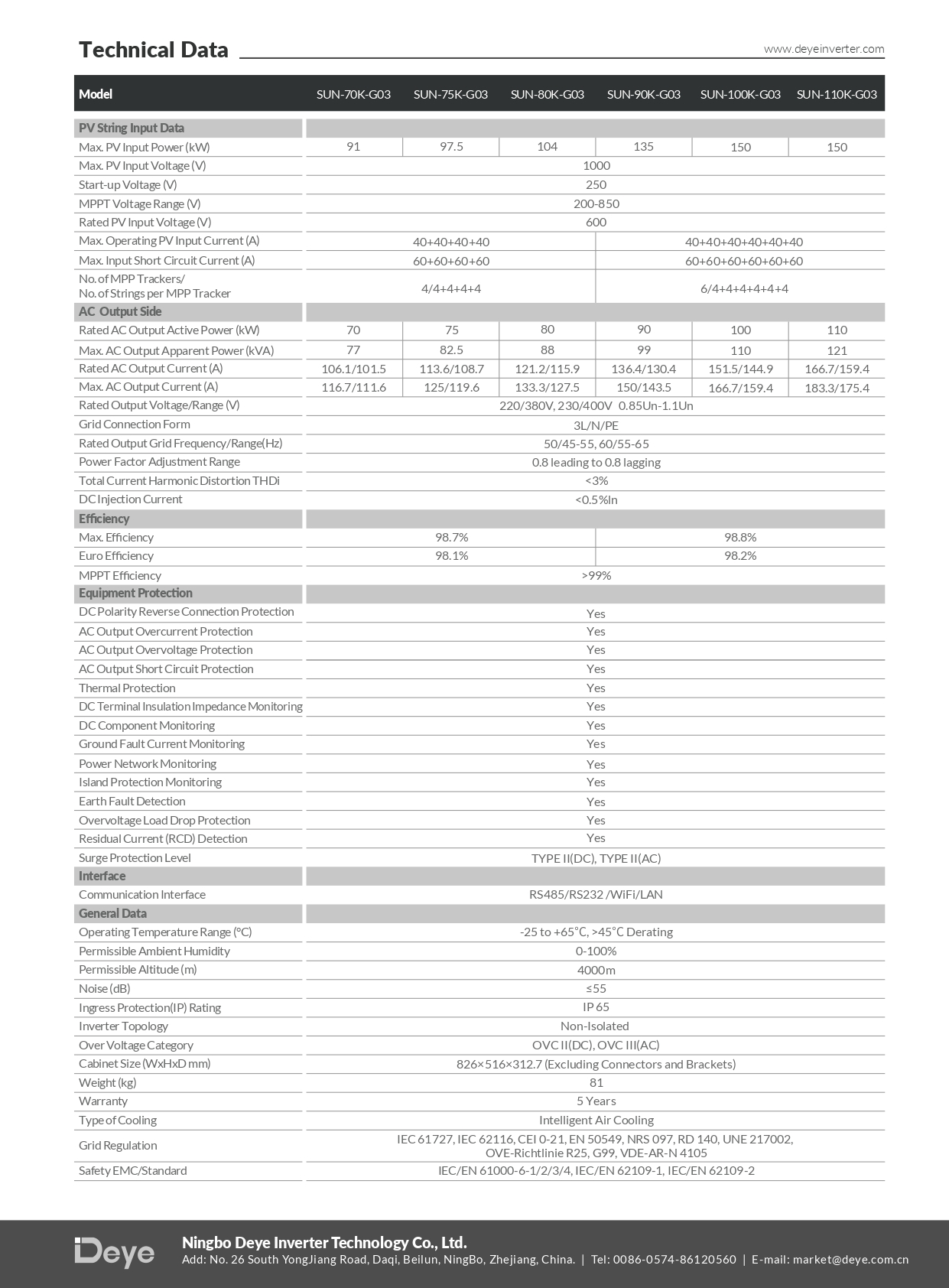 Three Phase String inverter 380V BIG SUN-100K-G03, SUN-110K-G03