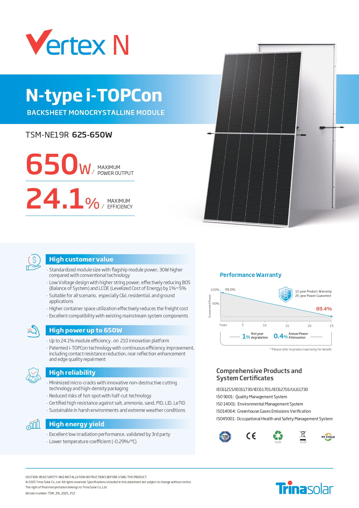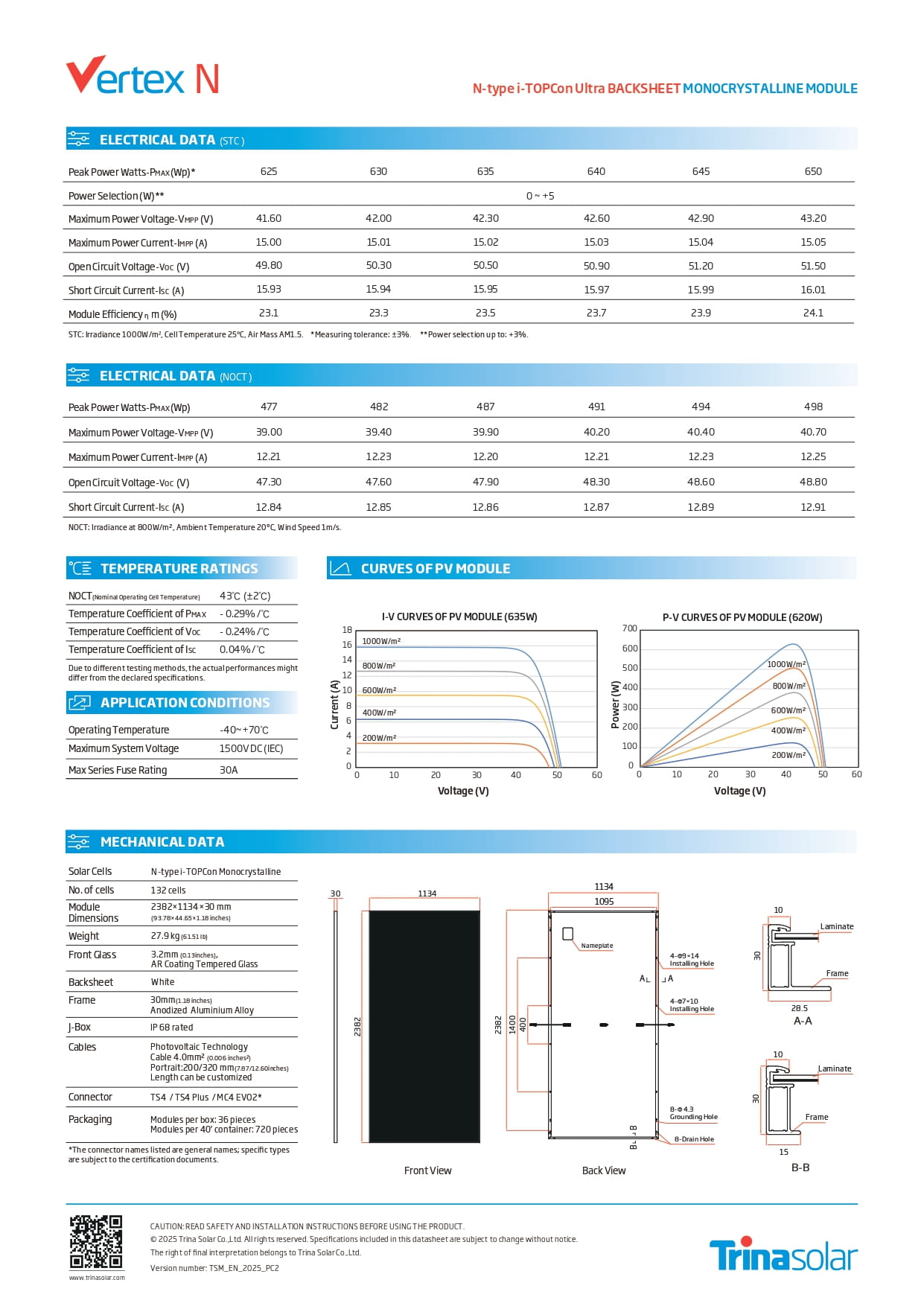 • Trina Vertex 630W Anti-Dust Backsheet Monocrystalline Module | Distributor Trina Solar